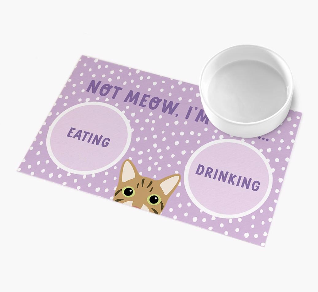 Personalised with your Cat's icon and available in four pastel colours, this feeding mat is purrfect for Cat purrents who need someehere to place Aztec's food bowls.