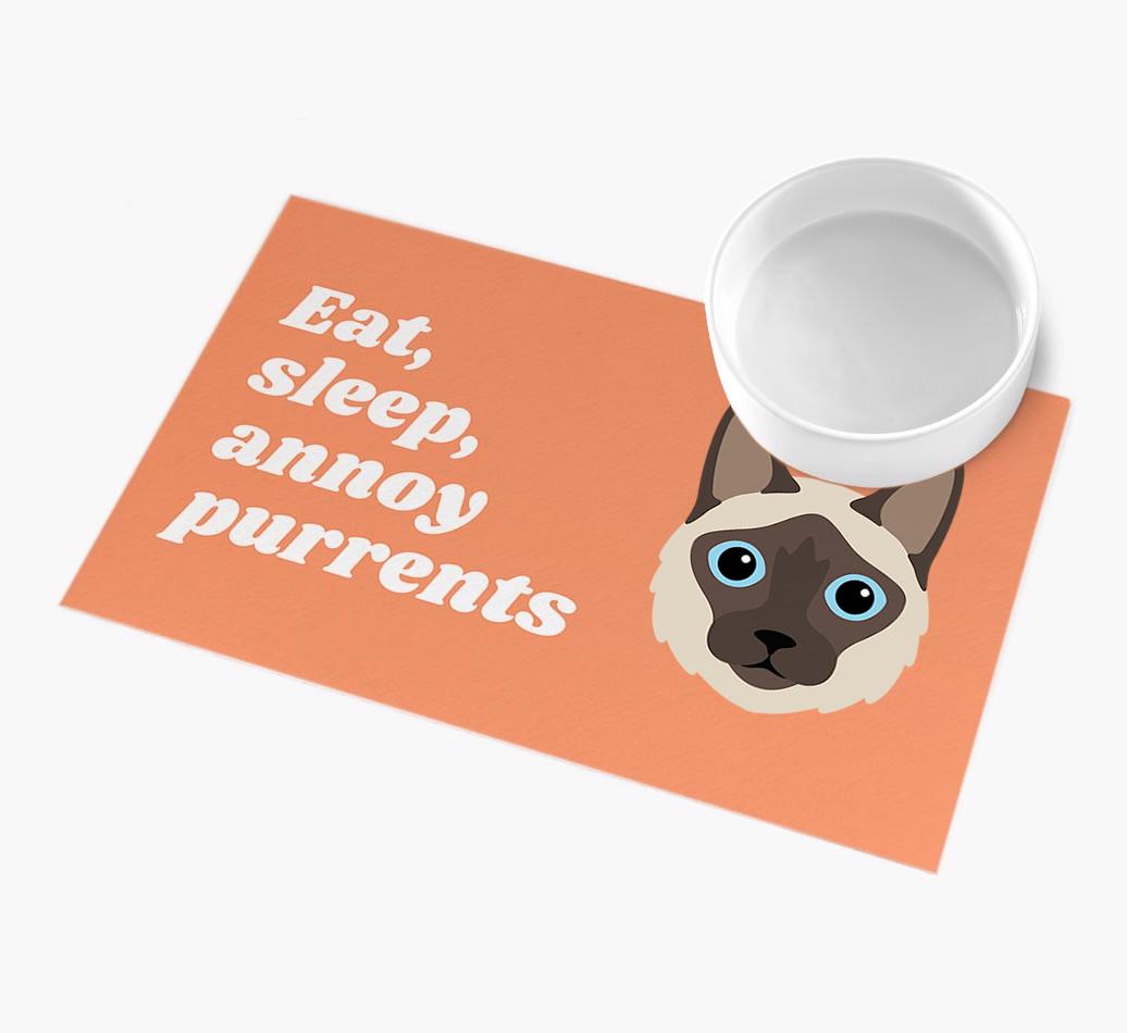 Eat, Sleep, Annoy Purrents: Personalised Balinese Feeding Mat