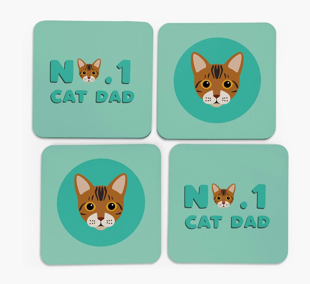 'No. 1 Cat Dad' - Personalised Bengal Coasters (Set of 4)