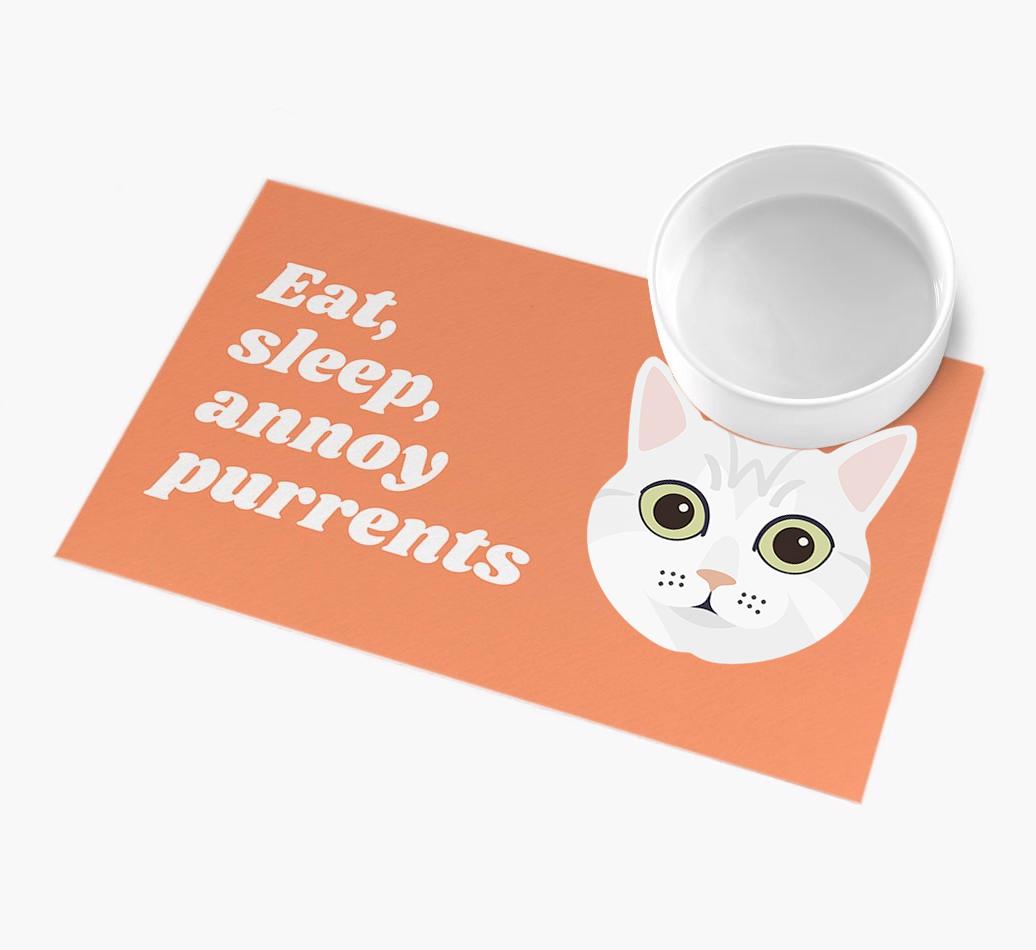Eat, Sleep, Annoy Purrents: Personalised Burmilla Feeding Mat