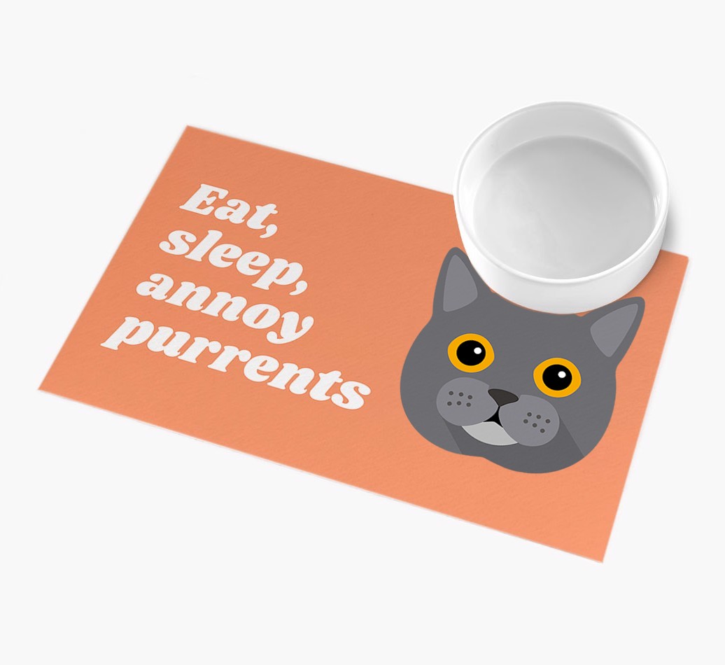 Eat, Sleep, Annoy Purrents: Personalised Cat Feeding Mat