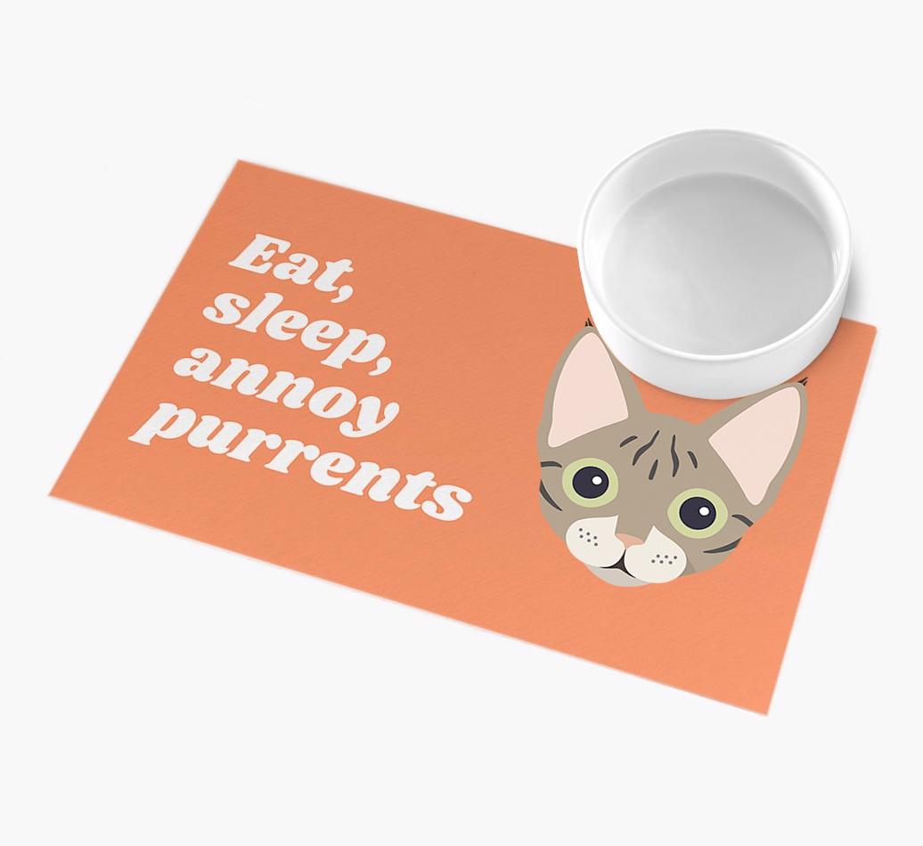 Eat, Sleep, Annoy Purrents: Personalised Devon Rex Feeding Mat