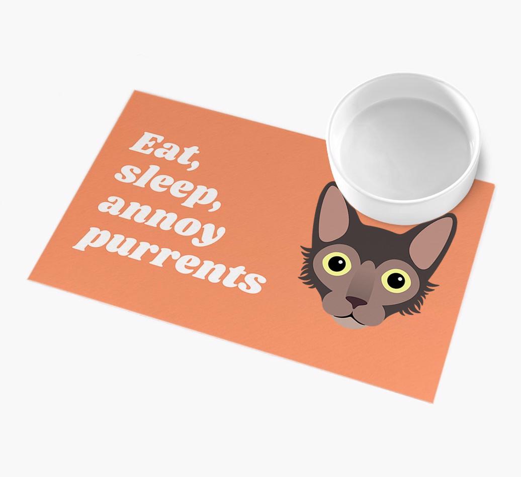 Eat, Sleep, Annoy Purrents: Personalised Lykoi Feeding Mat
