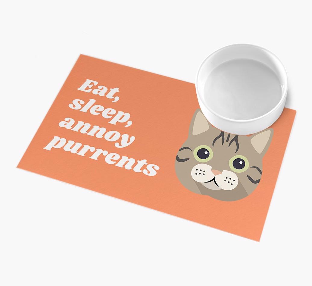 Eat, Sleep, Annoy Purrents: Personalised Manx Feeding Mat