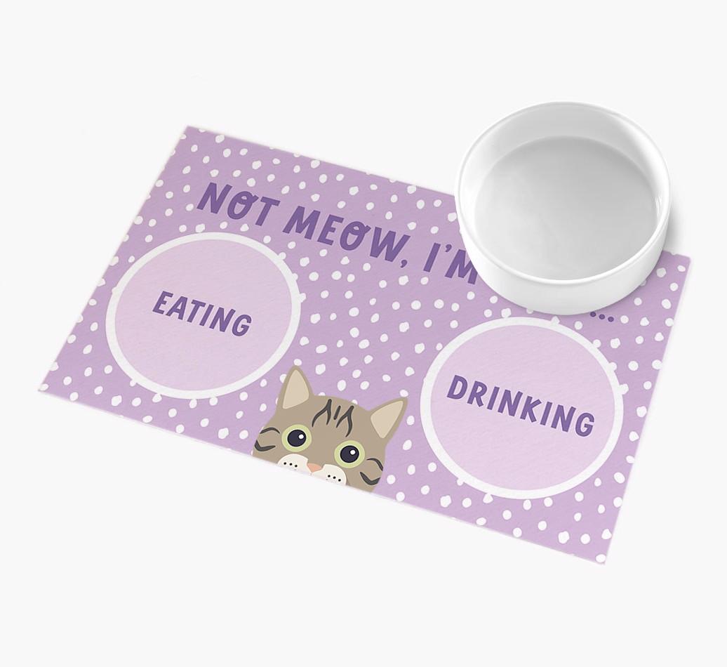 This cheeky feeding mat lets everyone know not to disturb Manx when their engaging in impawtent tasks (a.k.a. eating and drinking)!