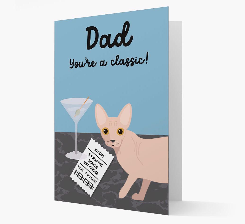 Featuring Minskin's personalised Yappicon and available in 4 classy colours, this card is purrfect for Minskin dads whose furvourite cocktail is a martini.