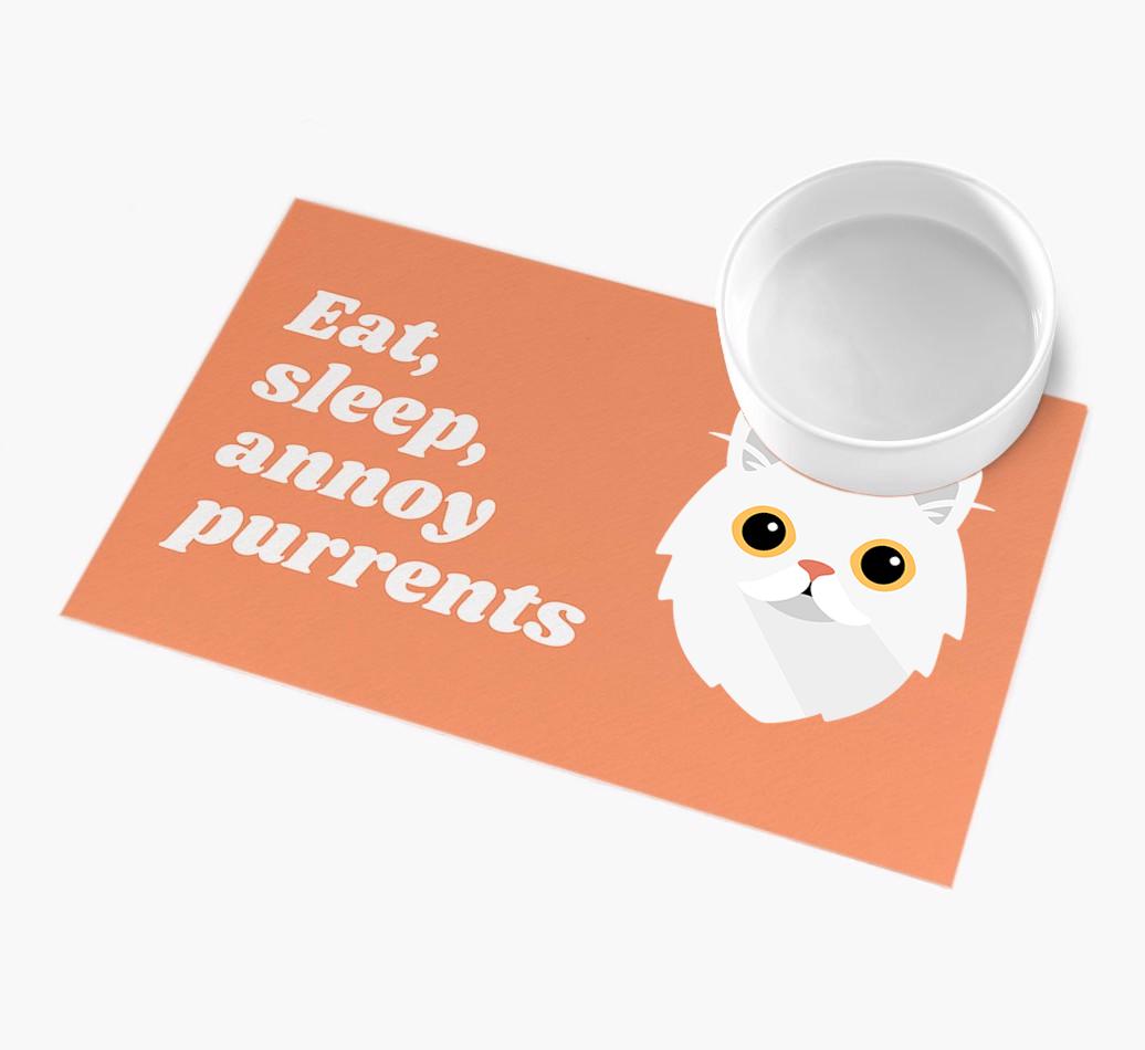 Eat, Sleep, Annoy Purrents: Personalised Cat Feeding Mat