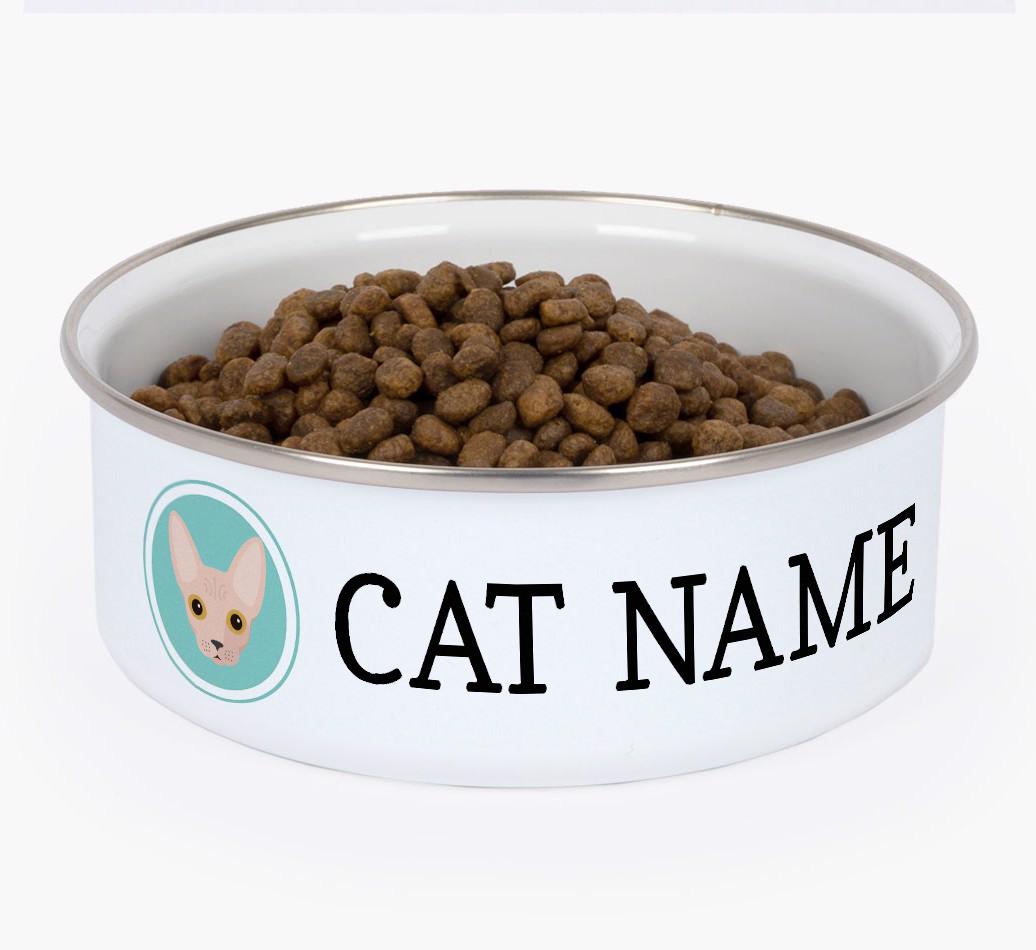 Name and Icon: Personalised Sphynx Enamel Cat Bowl