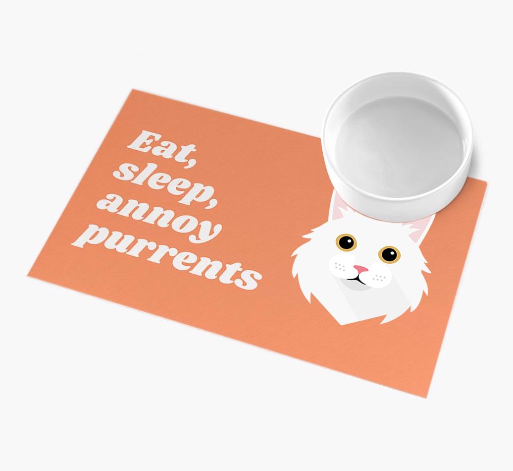 Eat, Sleep, Annoy Purrents: Personalised Cat Feeding Mat
