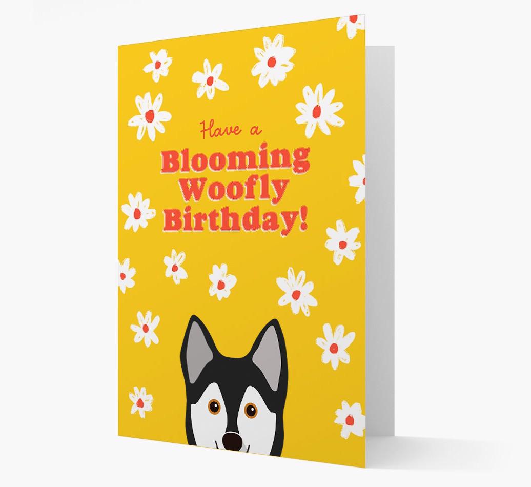 Blooming Woofly Birthday: Personalised Alaskan Klee Kai Card