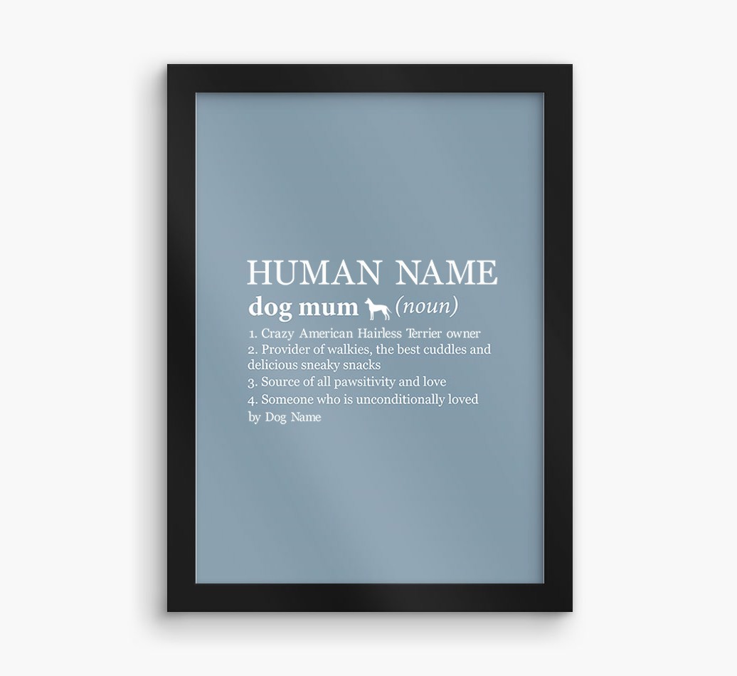 Mum Definition: Personalised American Hairless Terrier Framed Print