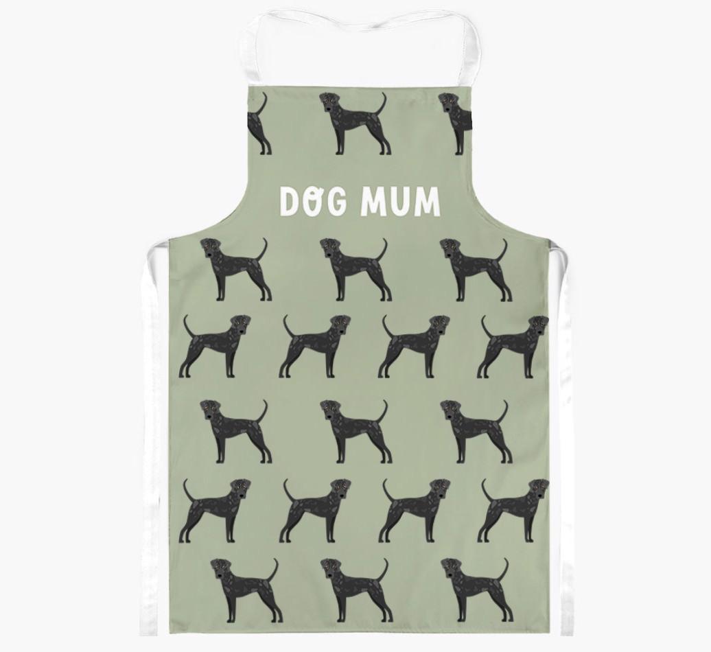 Available in five stylish colours, this apron is made extra special as it's personalised with a pattern of Leopard Cur icons. Pawfect!