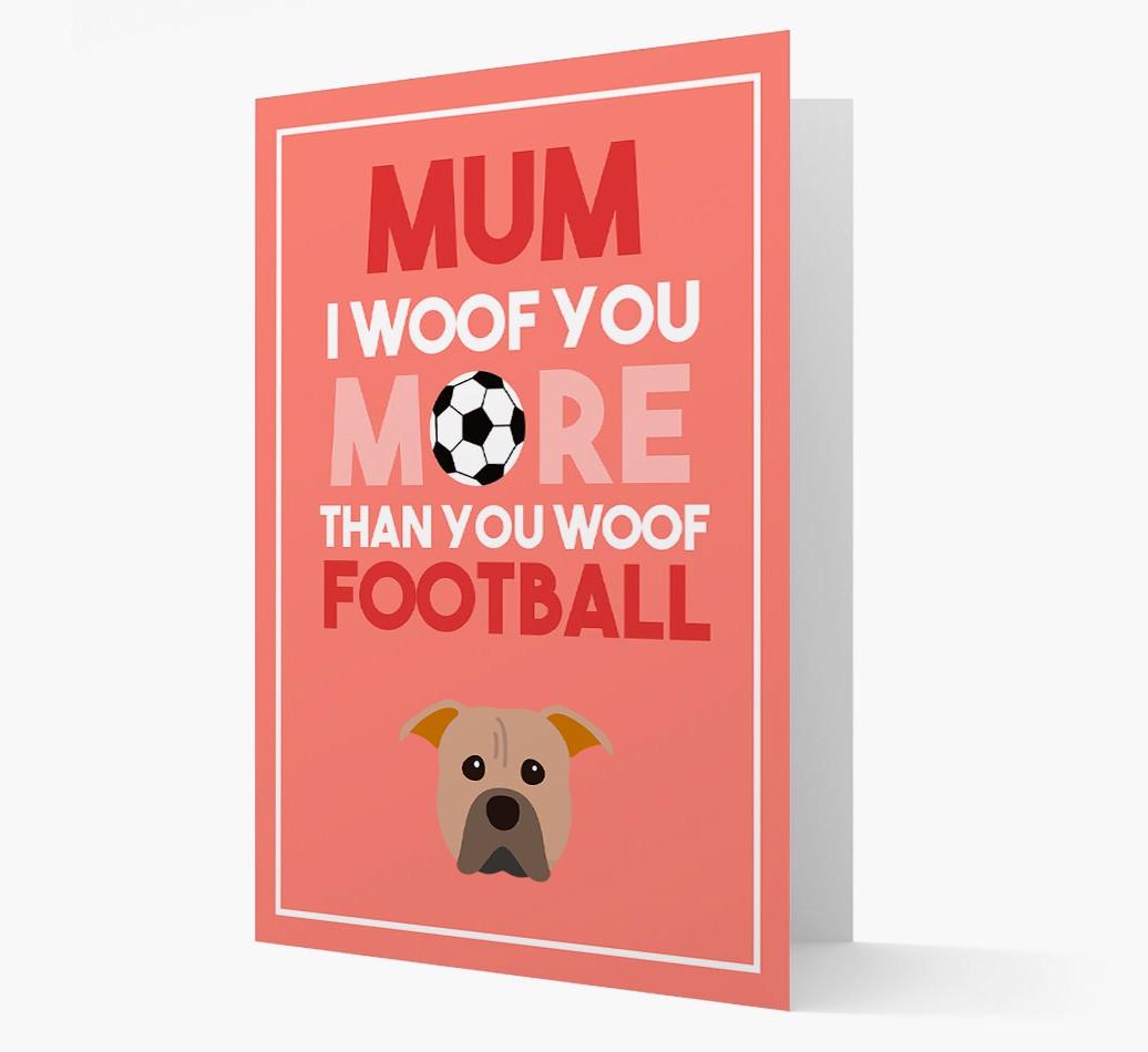 Mum I Woof You More Than You Woof Football: Personalised American Pit Bull Terrier Card