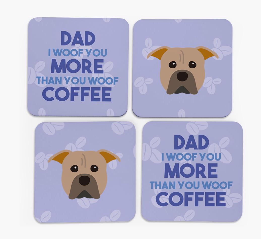 'Dad I Woof You More Than You Woof Coffee' - Personalised American Pit Bull Terrier Coasters