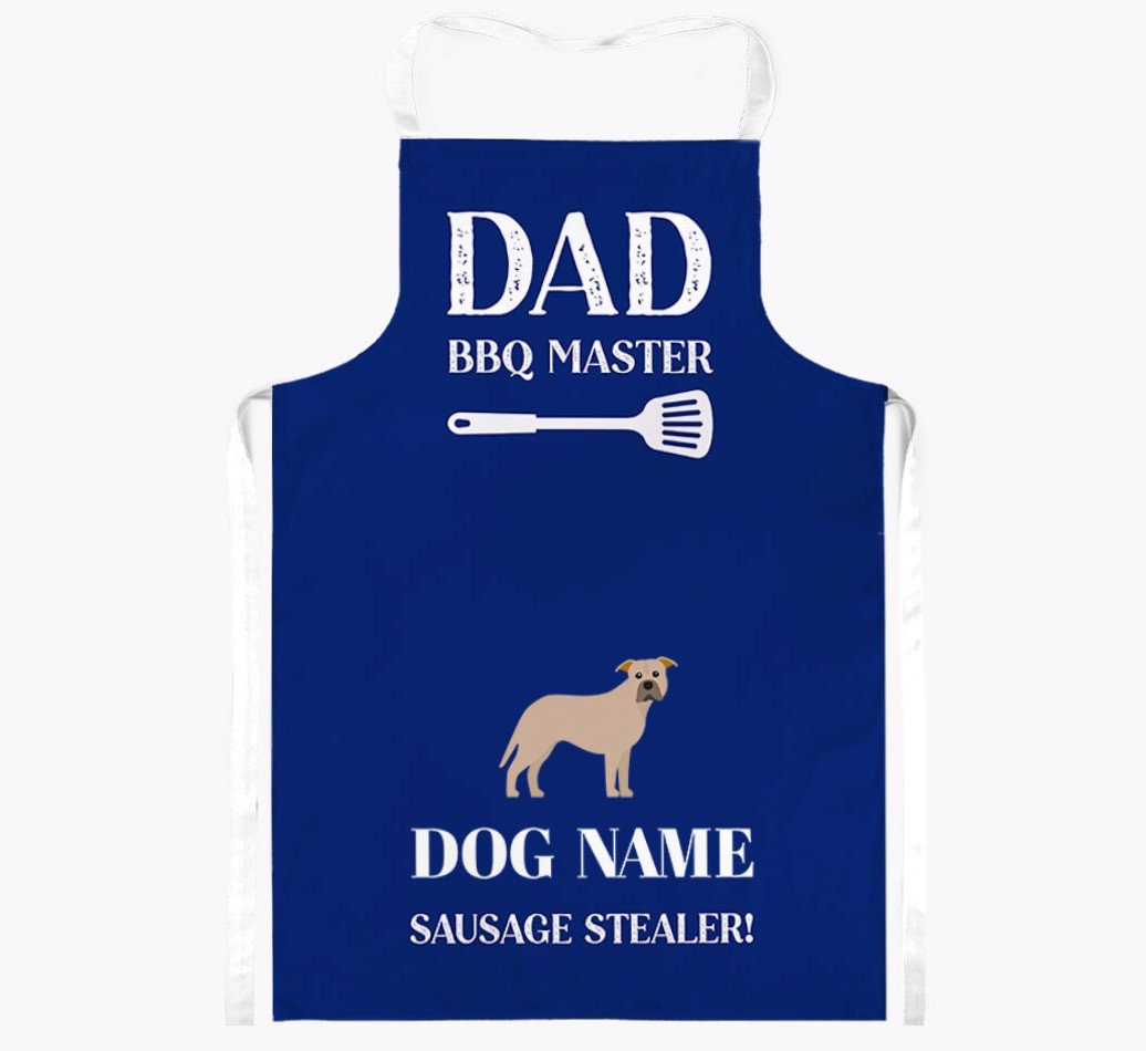 Featuring your furry friend's name and icon, this personalised apron isn't just great for protecting clothes from inevitable cooking splashes, but it'll also warn others about American Pit Bull Terrier's sausage stealing antics too!