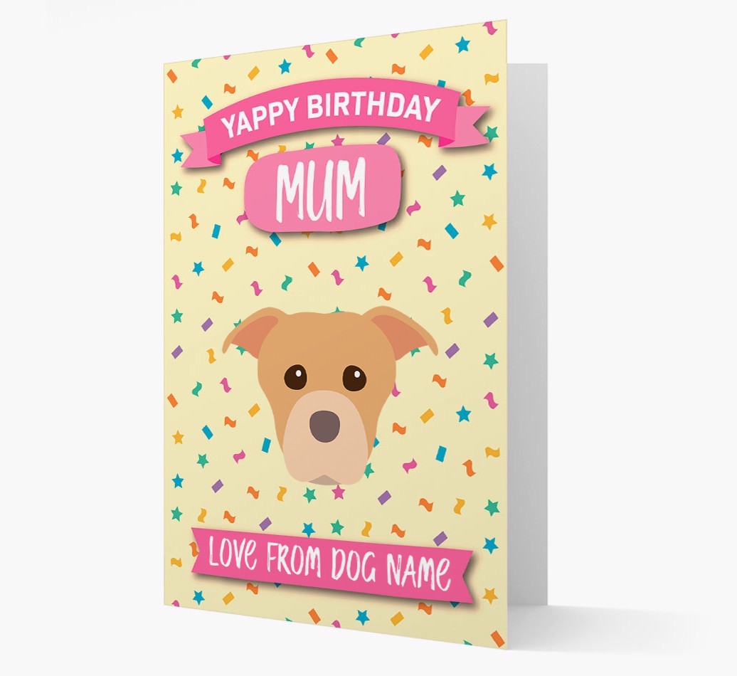 'Yappy Birthday Mum' - Personalised American Staffordshire Terrier Birthday Card