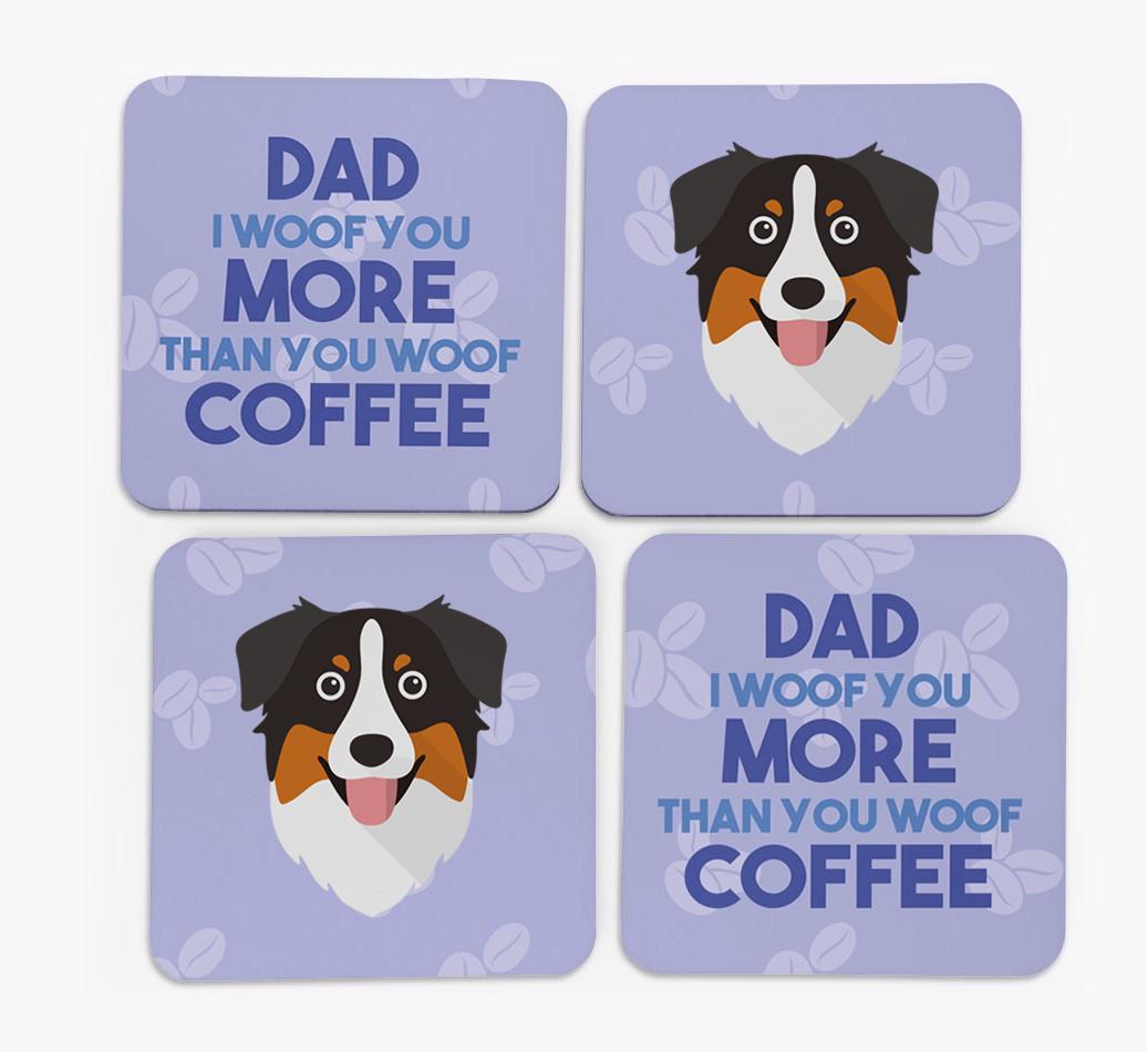 'Dad I Woof You More Than You Woof Coffee' - Personalised Australian Shepherd Coasters