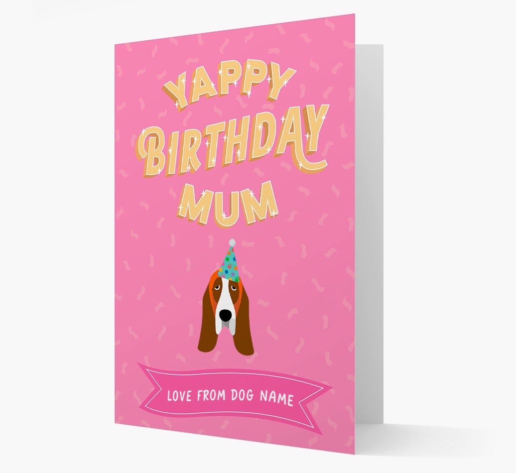 This customisable Basset card is a woofly way for Basset Hound to wish their mum the yappiest of birthdays!