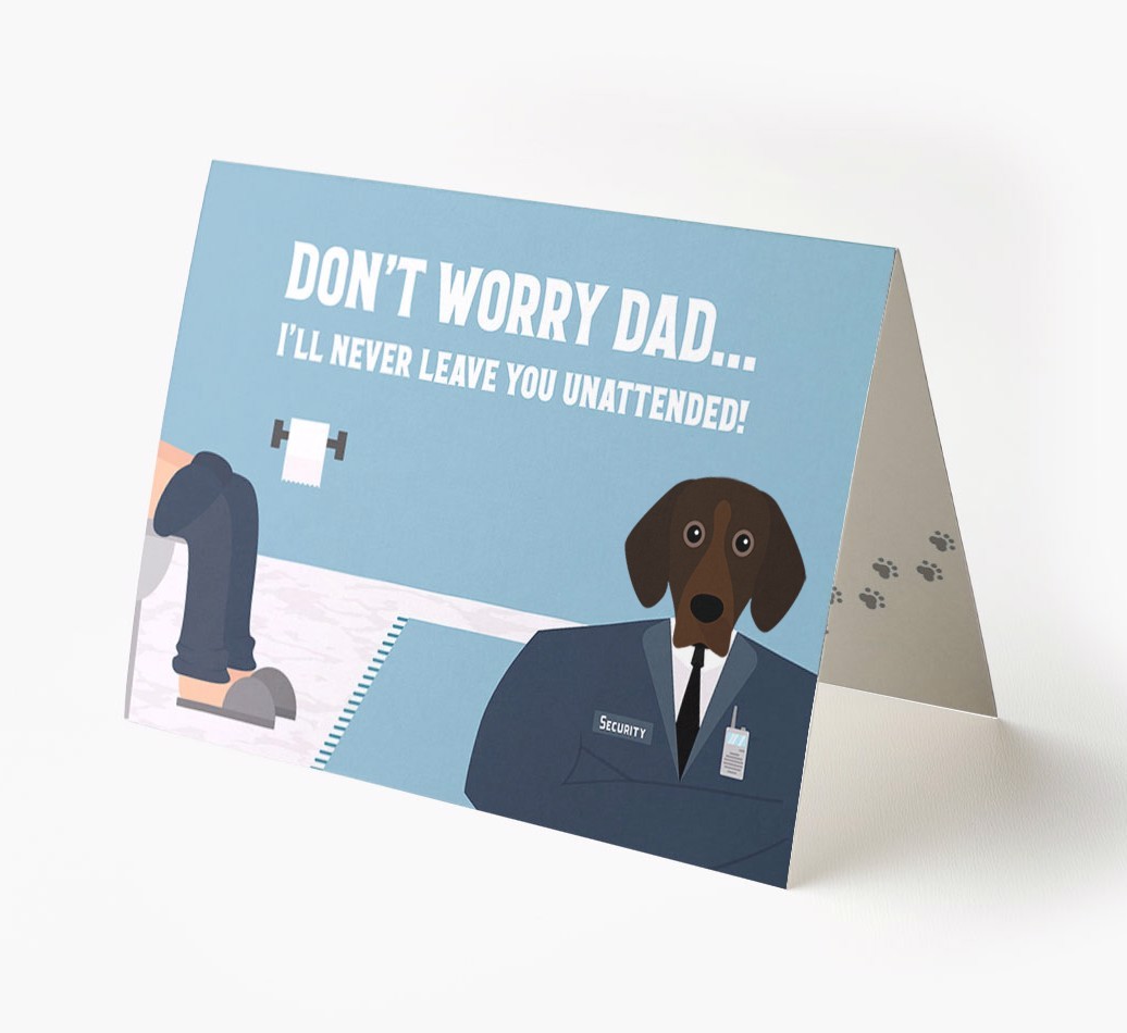 Pawfect for father's day and for Bavarian Mountain Hound dads, this card is the ultimate way to let your dad know that his personal security guard (Bavarian Mountain Hound) will never leave him unattended!