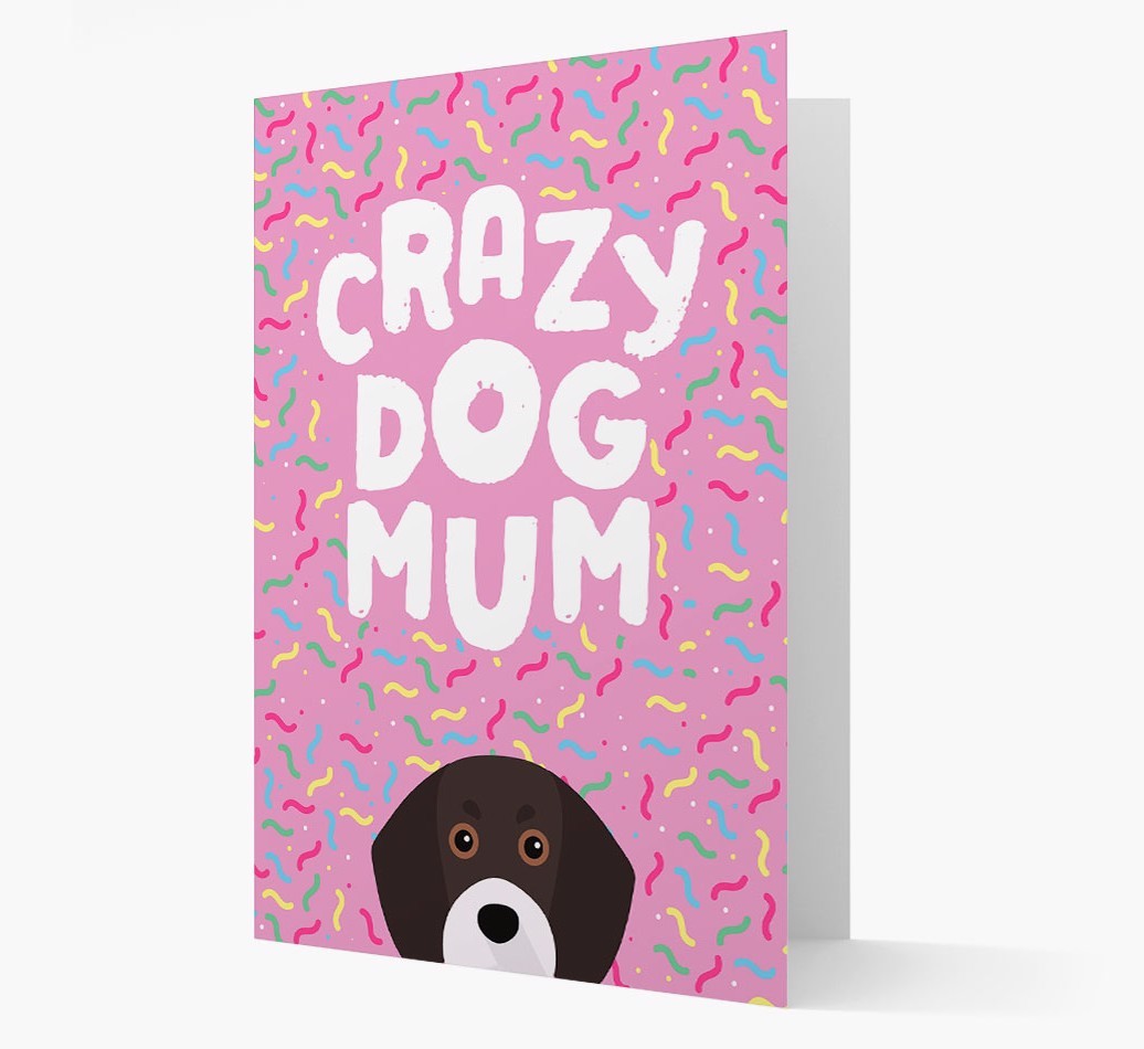 Featuring a colourful confetti background, this joyful card is guaranteed to brighten every Crazy Dog Mum's day.