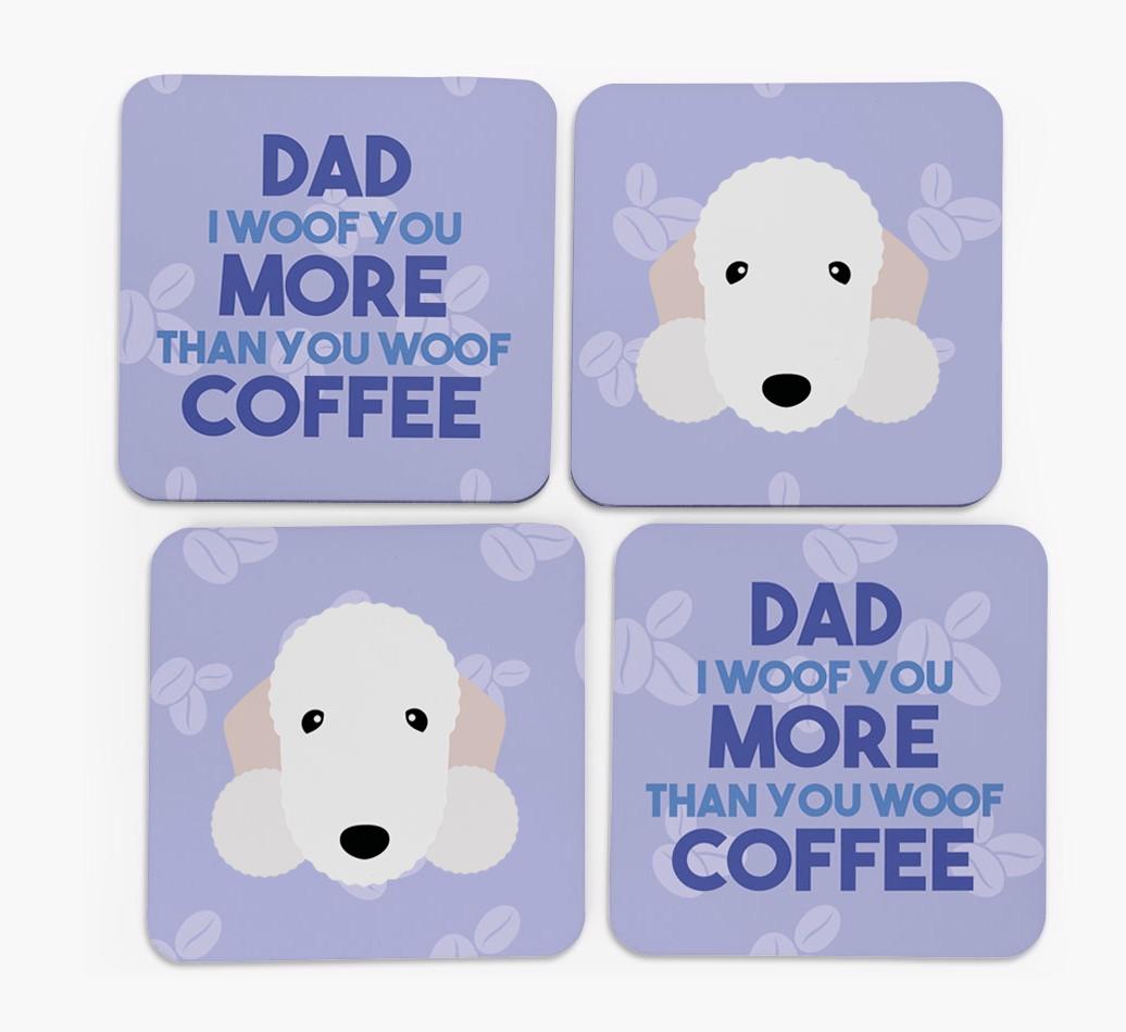 'Dad I Woof You More Than You Woof Coffee' - Personalised Bedlington Terrier Coasters