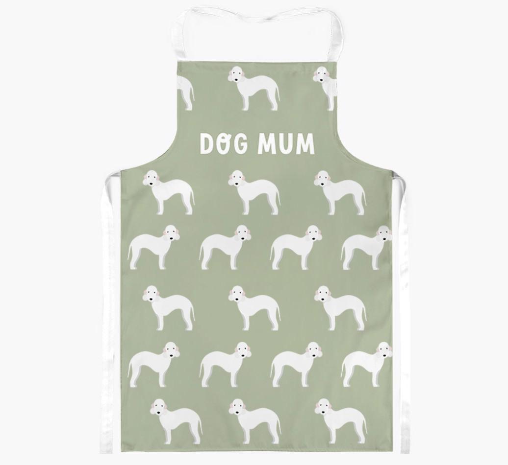 Available in five stylish colours, this apron is made extra special as it's personalised with a pattern of Bedlington icons. Pawfect!