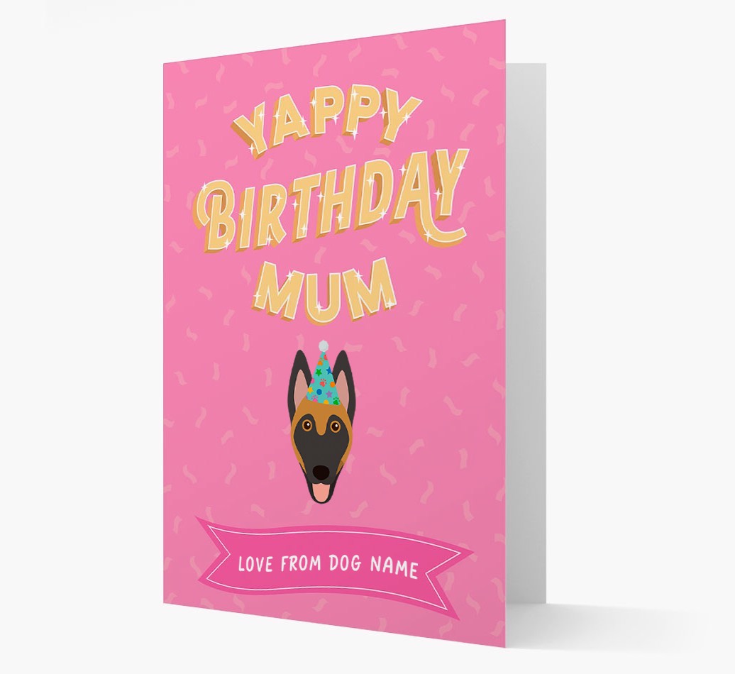 Yappy Birthday Mum: Personalised Belgian Shepherd Card