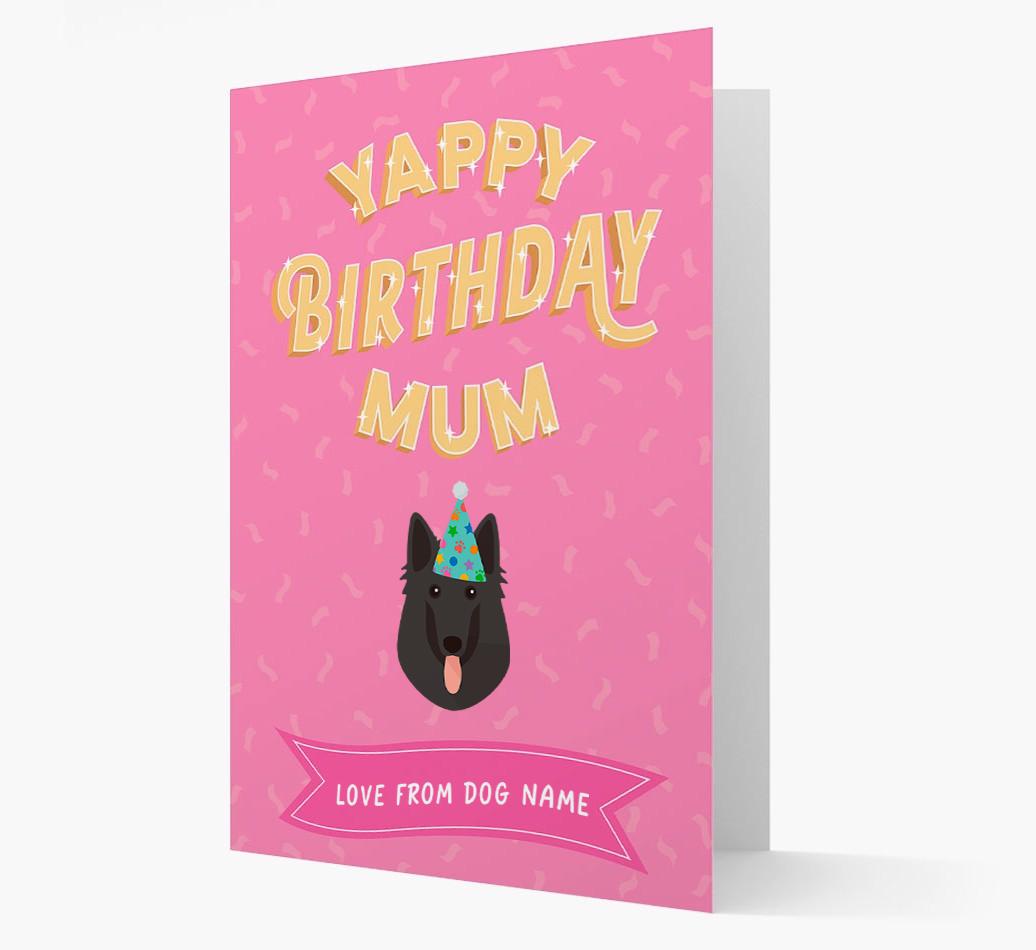 Yappy Birthday Mum: Personalised Belgian Shepherd Card
