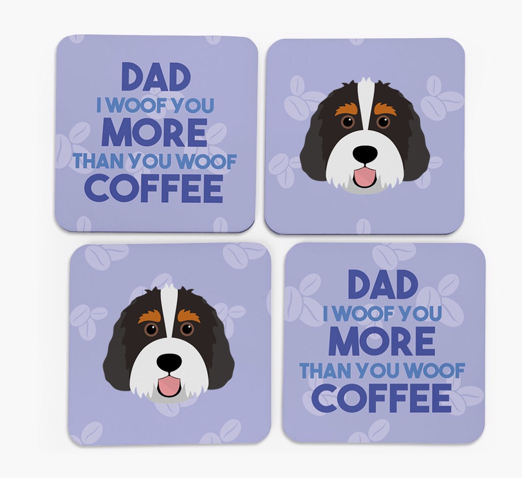 'Dad I Woof You More Than You Woof Coffee' - Personalised Bernedoodle Coasters