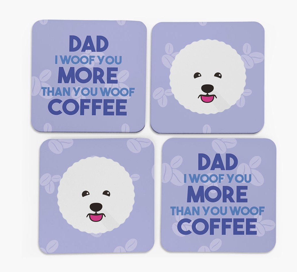 'Dad I Woof You More Than You Woof Coffee' - Personalised Bichon Frise Coasters