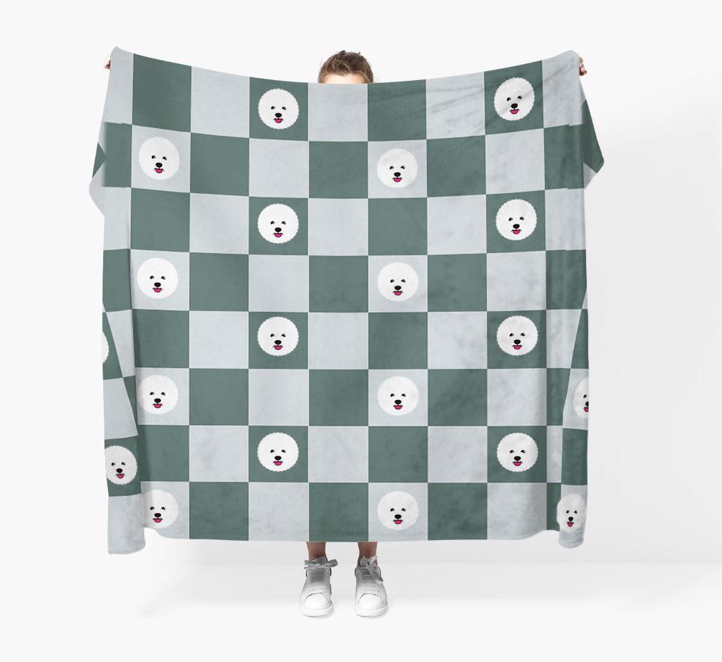 'Checkerboard' - Personalised Bichon Frise Throw Blanket