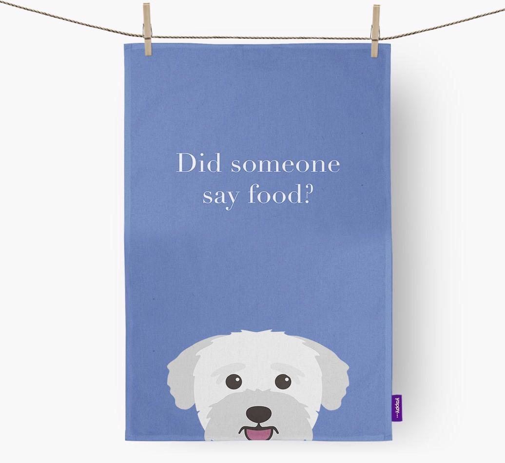 'Did Someone Say Food?' - Personalised Bichon Yorkie Tea Towel