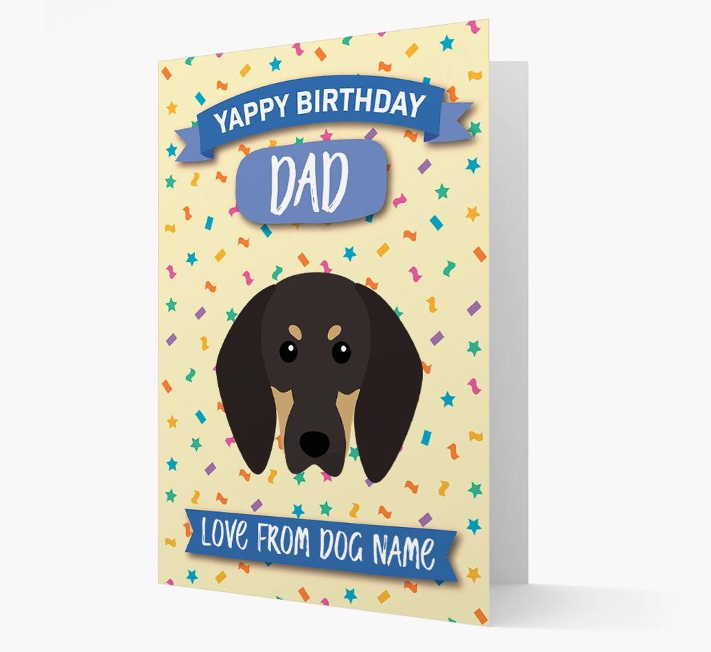 'Yappy Birthday Dad' - Personalised Black and Tan Coonhound Birthday Card