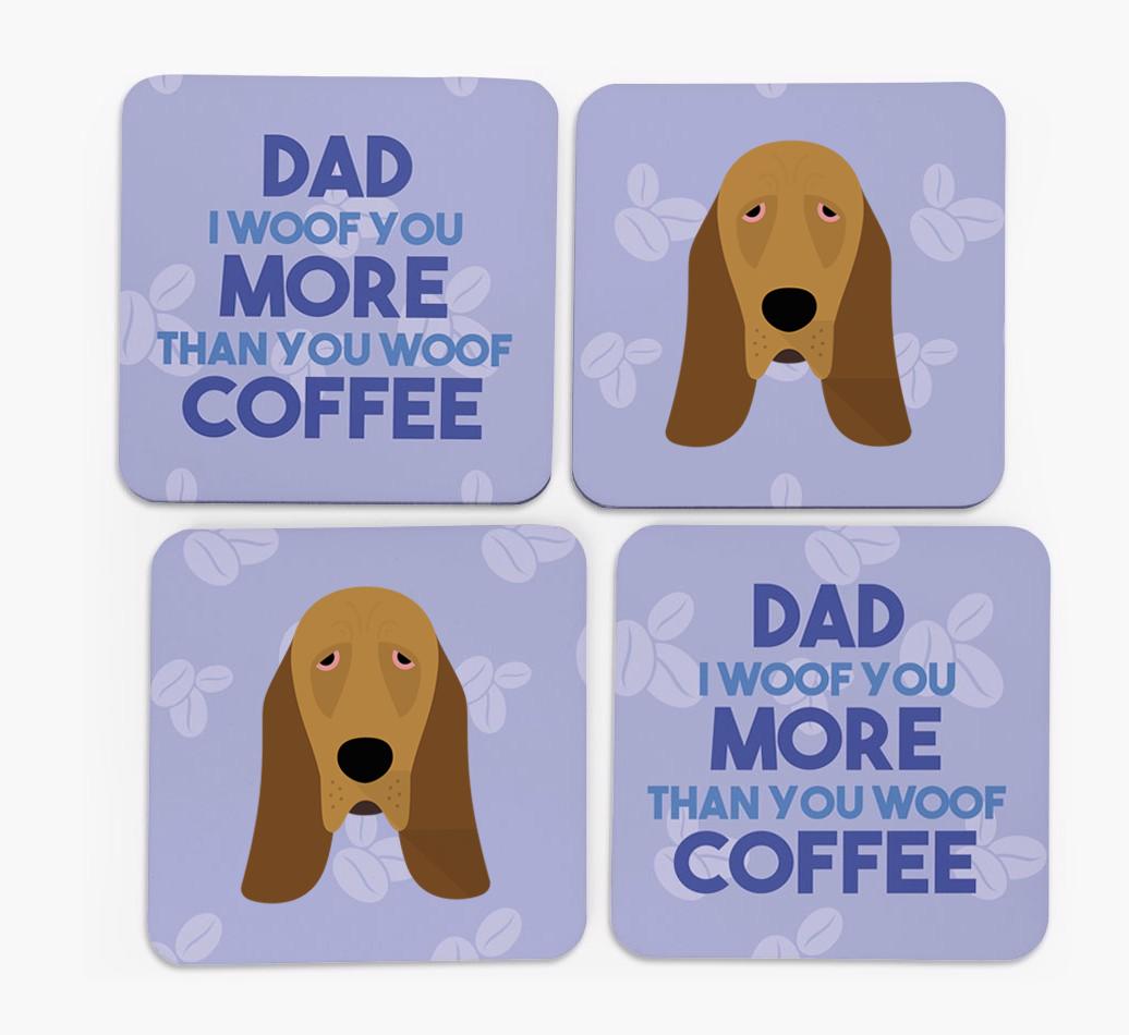 'Dad I Woof You More Than You Woof Coffee' - Personalised Bloodhound Coasters