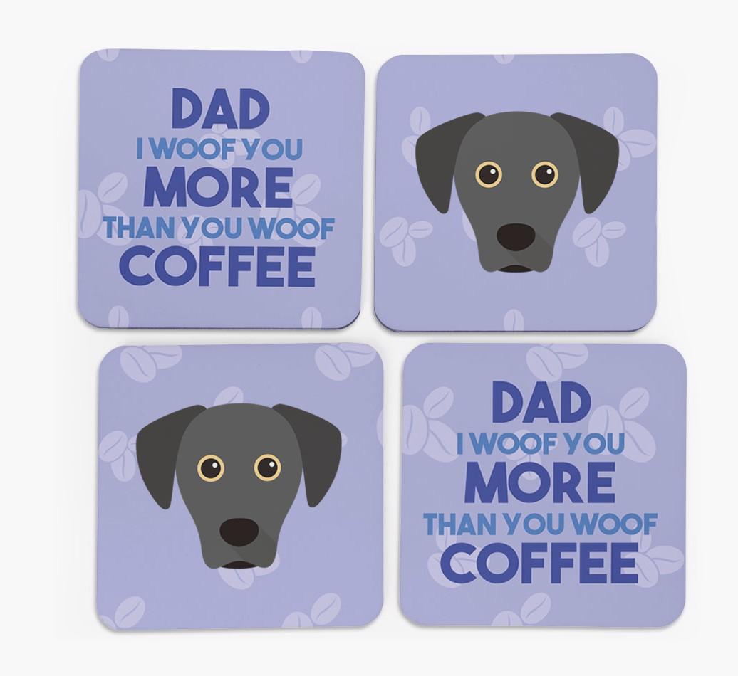 'Dad I Woof You More Than You Woof Coffee' - Personalised Blue Lacy Coasters