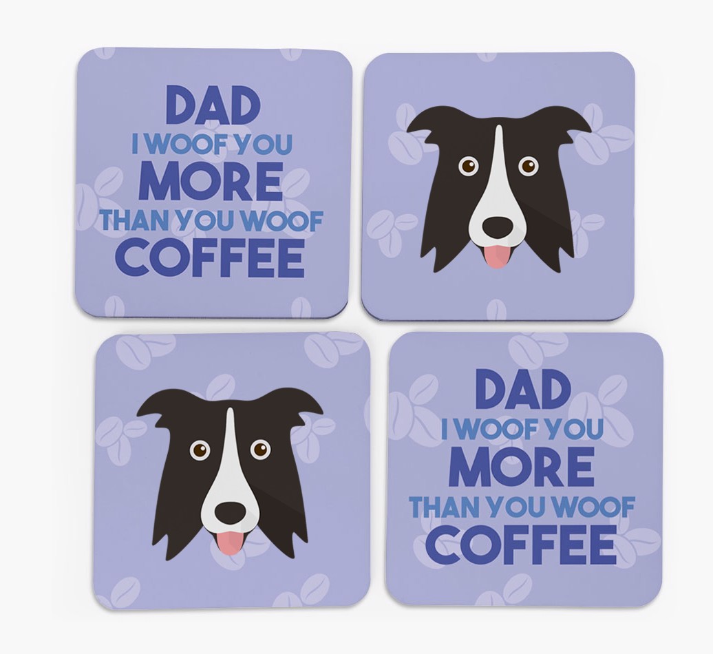 'Dad I Woof You More Than You Woof Coffee' - Personalised Border Collie Coasters
