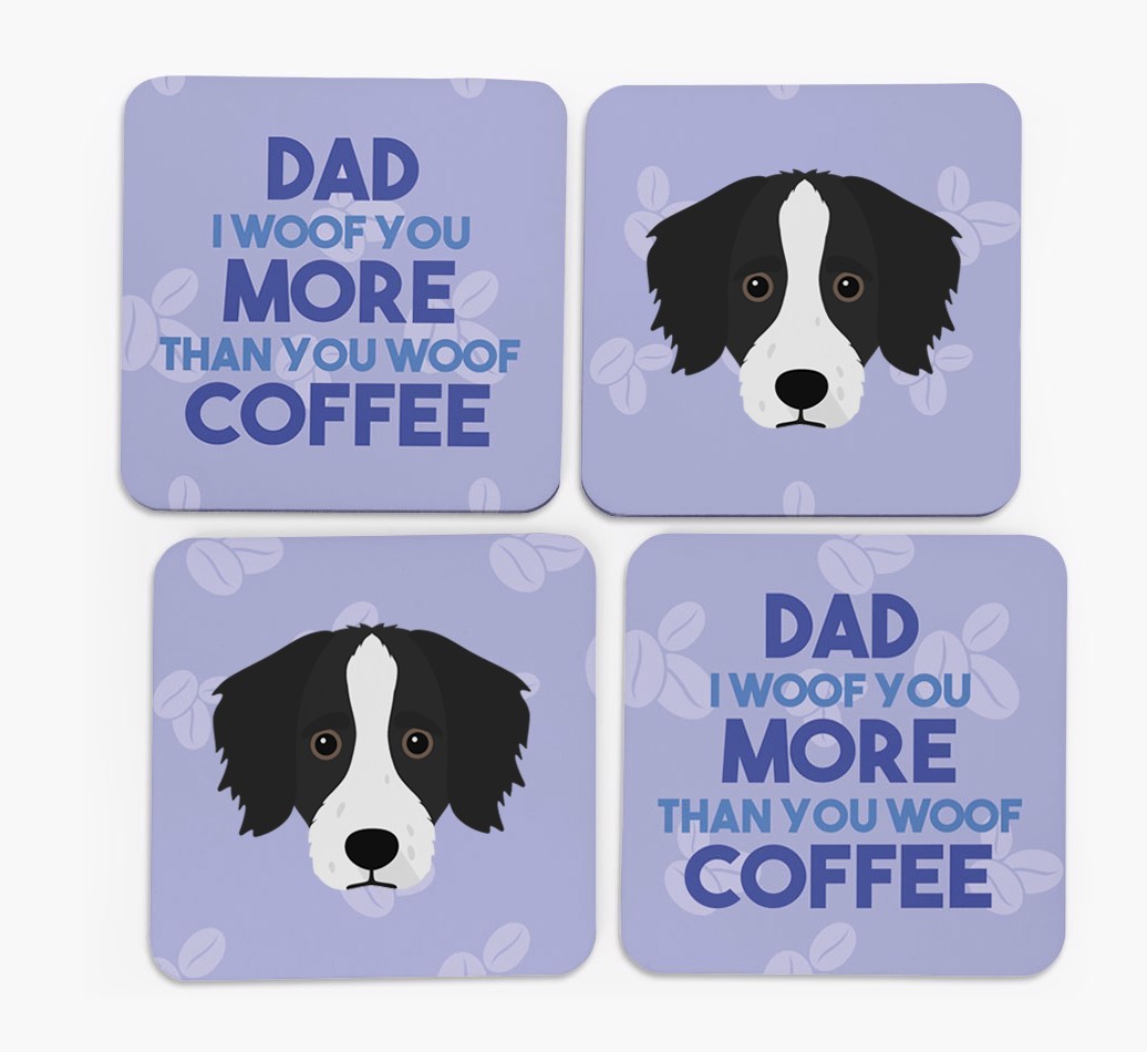 'Dad I Woof You More Than You Woof Coffee' - Personalised Bordoodle Coasters