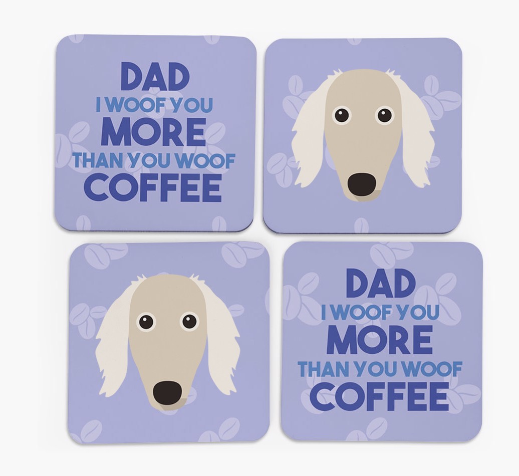 'Dad I Woof You More Than You Woof Coffee' - Personalised Borzoi Coasters