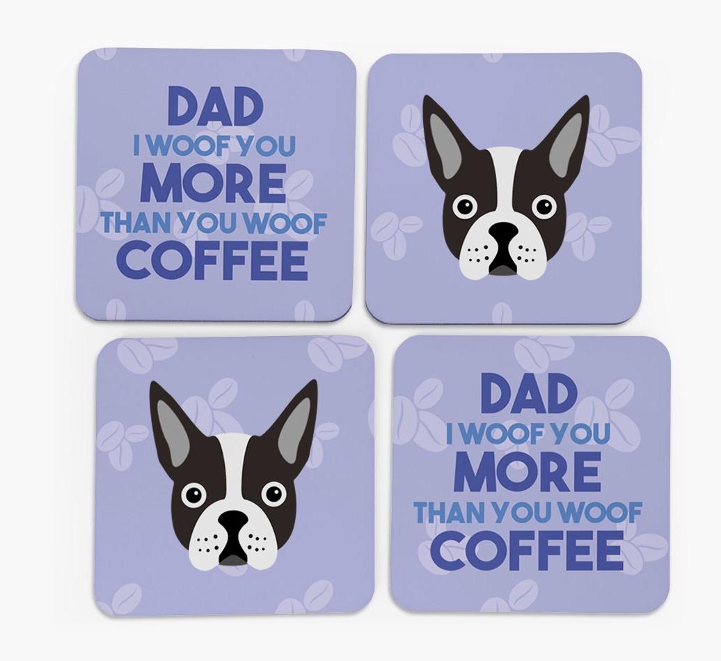 'Dad I Woof You More Than You Woof Coffee' - Personalised Boston Terrier Coasters