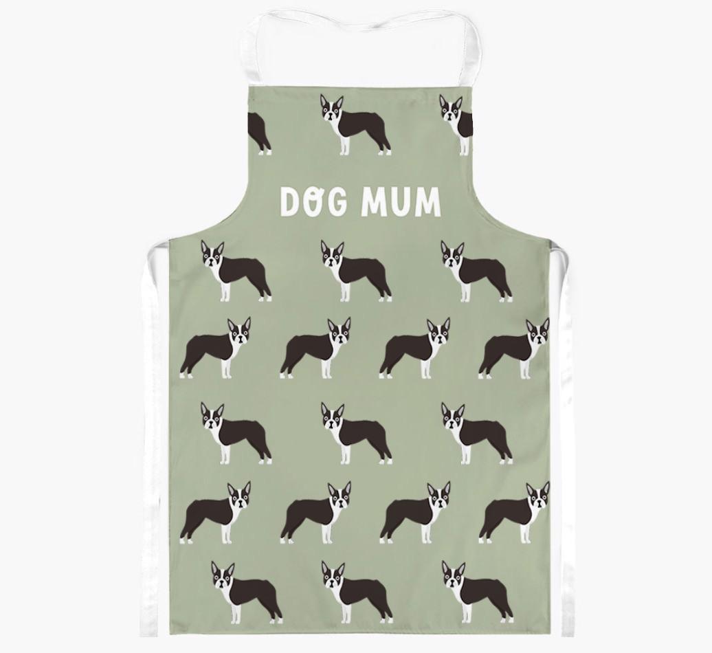 Available in five stylish colours, this apron is made extra special as it's personalised with a pattern of Boston Terrier icons. Pawfect!