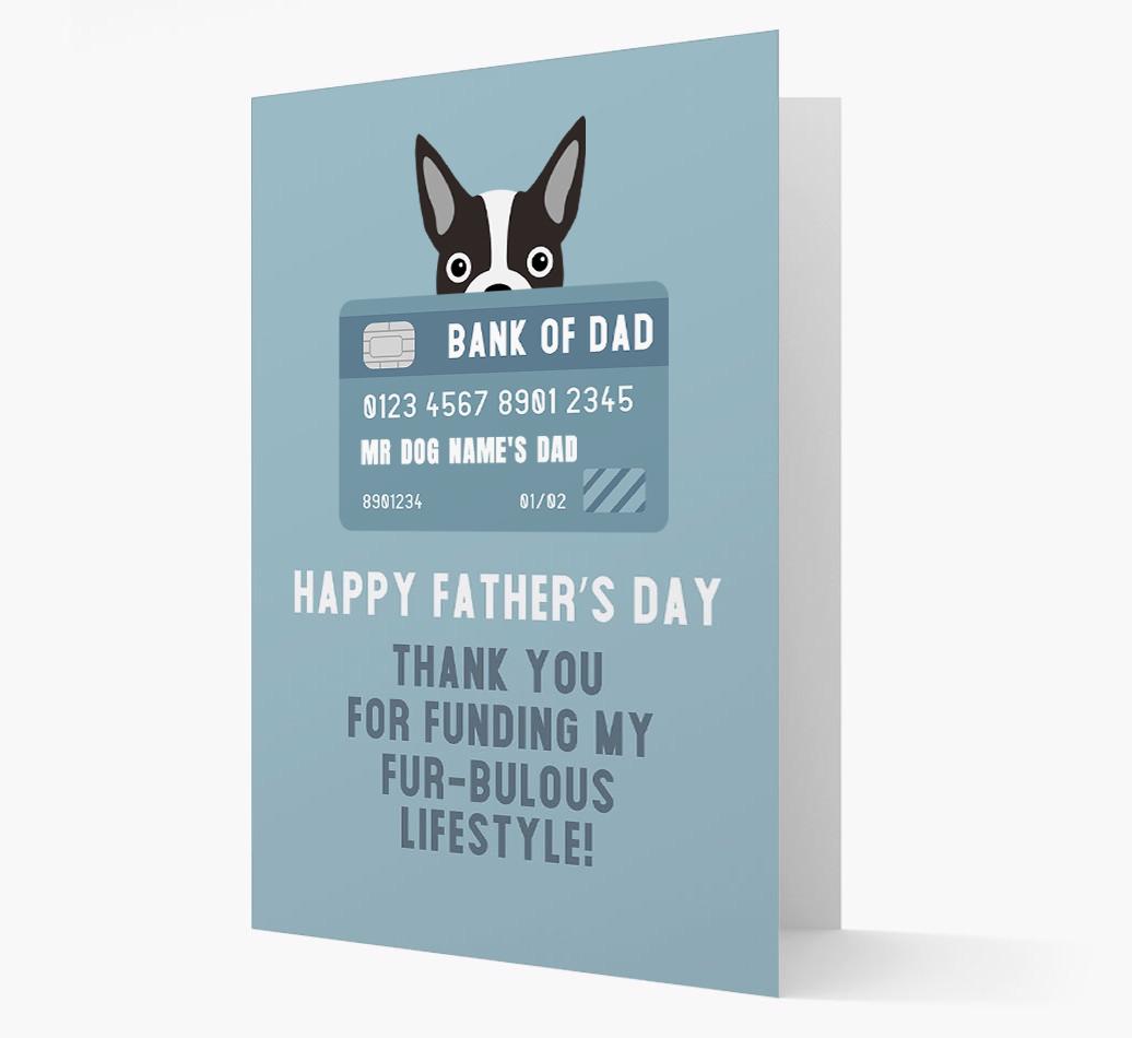 If Your Boston Terrier would woof to thank their dad for funding their lavish lifestyle, then this card is a charming way to do so.
