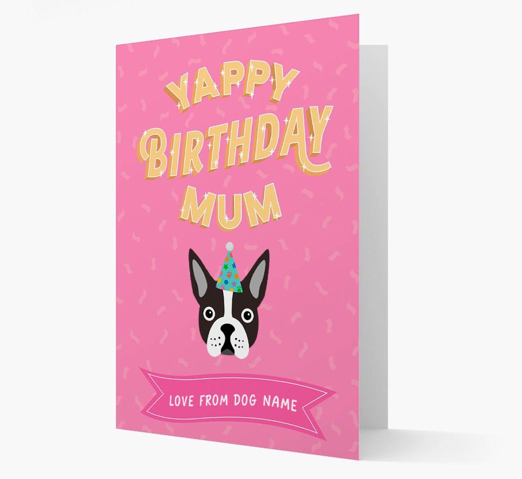 Yappy Birthday Mum: Personalised Boston Terrier Card