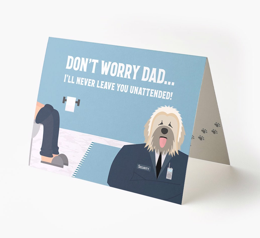 Pawfect for father's day and for Briard dads, this card is the ultimate way to let your dad know that his personal security guard (Briard) will never leave him unattended!