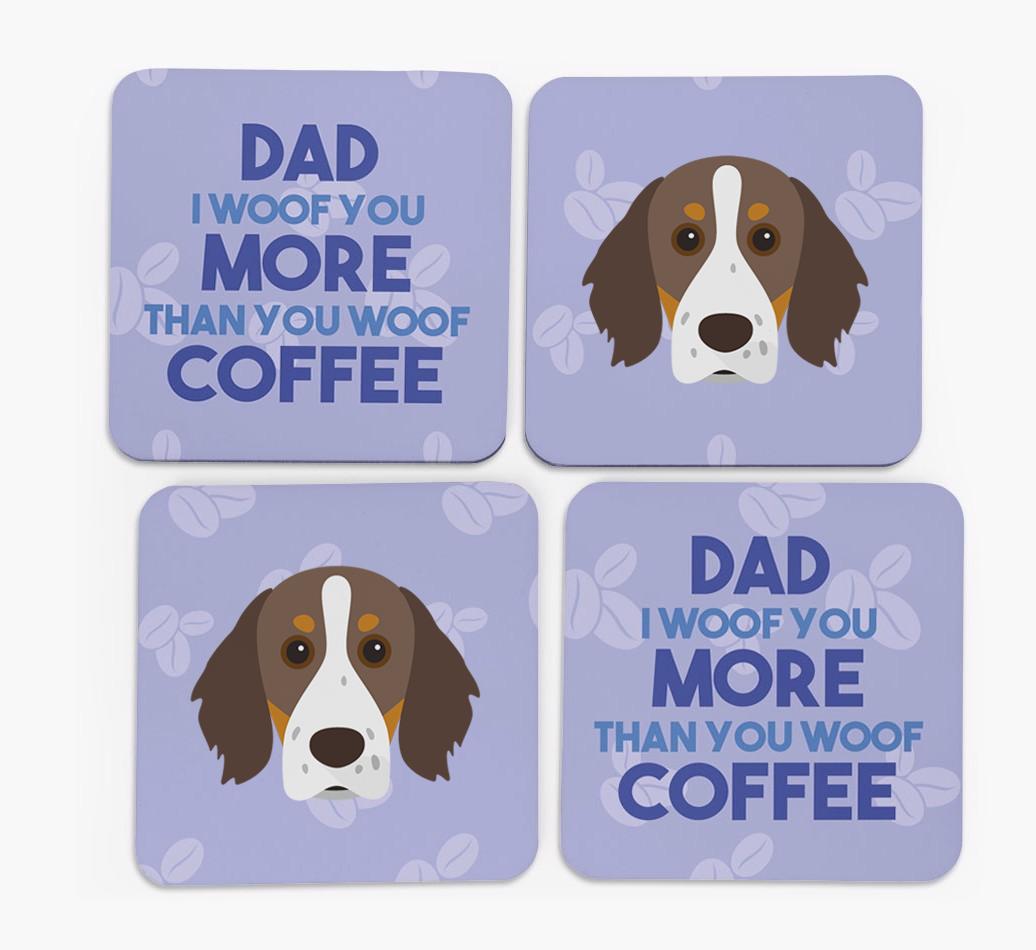 'Dad I Woof You More Than You Woof Coffee' - Personalised Brittany Coasters
