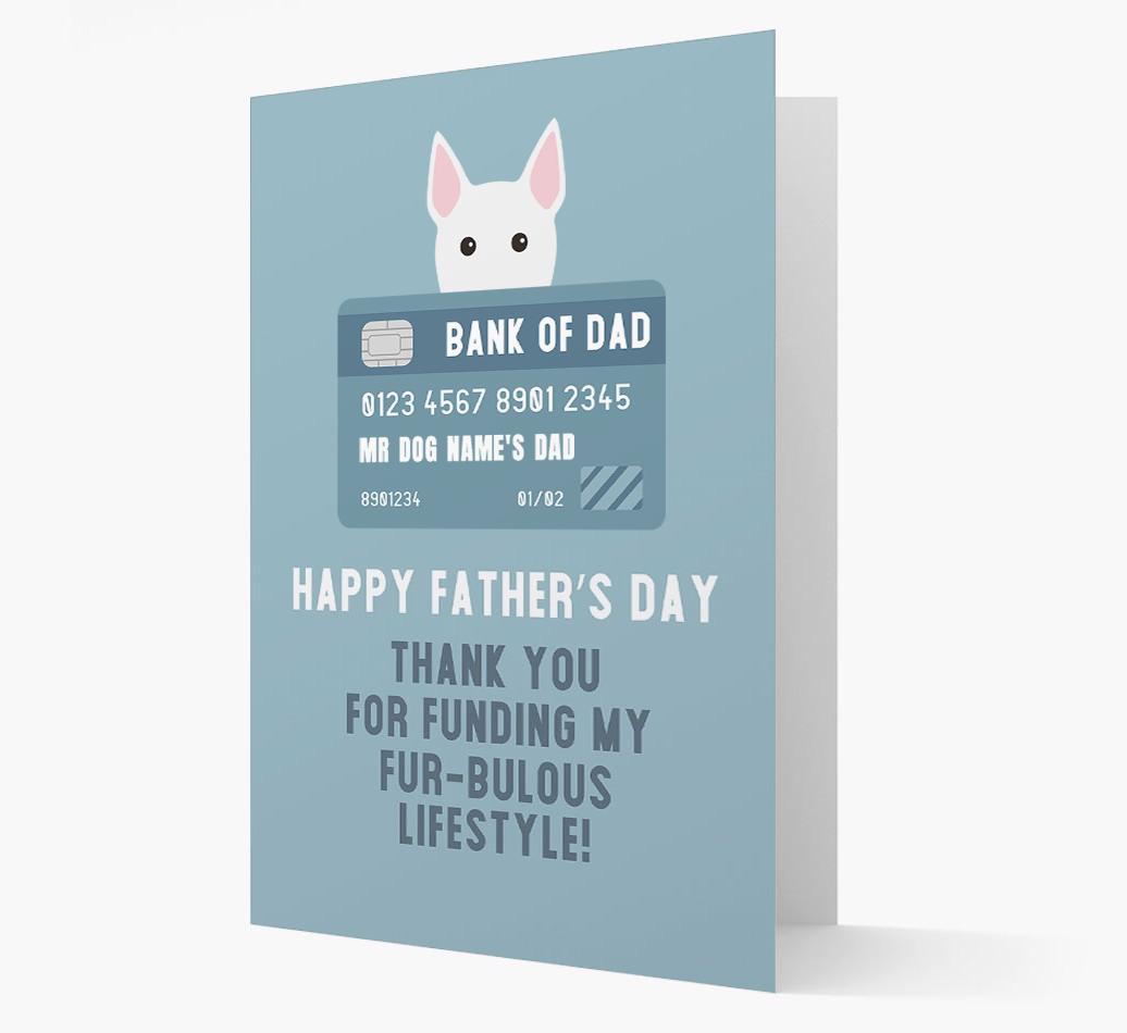 If Your Bull Terrier would woof to thank their dad for funding their lavish lifestyle, then this card is a charming way to do so.