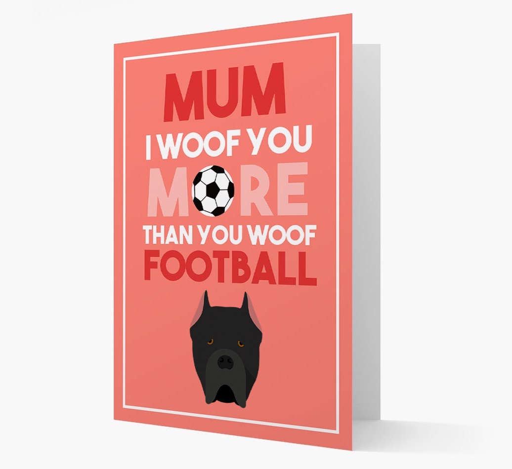 Mum I Woof You More Than You Woof Football: Personalised Cane Corso Italiano Card