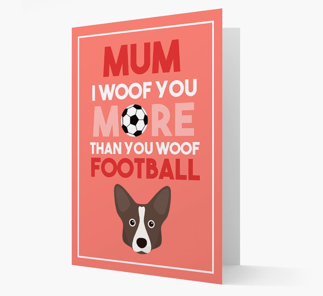 Mum I Woof You More Than You Woof Football: Personalised Cardigan Welsh Corgi Card