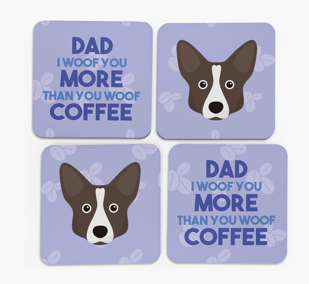 'Dad I Woof You More Than You Woof Coffee' - Personalised Cardigan Welsh Corgi Coasters