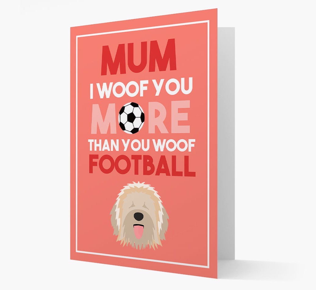 Mum I Woof You More Than You Woof Football: Personalised Catalan Sheepdog Card