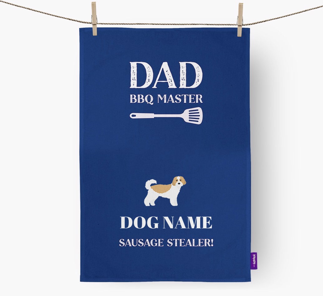 This personalised tea towel is the best way to hand over the title of 'BBQ Master' to Cavachon's dad.